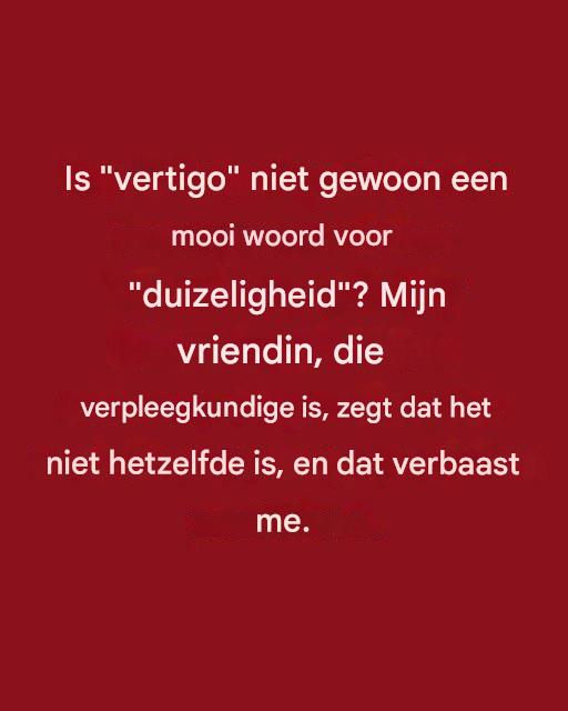Duizeligheid is een specifieke vorm van duizeligheid die wordt gekenmerkt door een vals gevoel dat u of uw omgeving ronddraait of beweegt. Het wordt vaak beschreven als een gevoel dat vergelijkbaar is met wat u zou kunnen ervaren na rondjes draaien en dan plotseling stoppen. Vertigo wordt meestal geassocieerd met problemen in het binnenoor of het vestibulaire systeem, dat verantwoordelijk is voor het bewaren van het evenwicht.