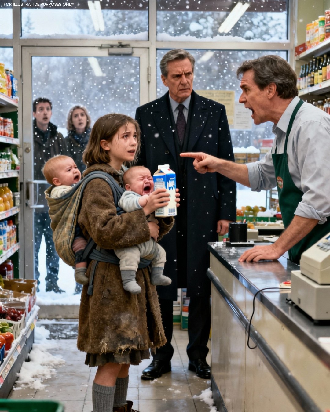 Een klein meisje werd uit een winkel gezet omdat ze een pak melk voor haar twee jongere broertjes en zusjes had gestolen. Plotseling zag een miljonair wat er gebeurd was en stapte naar voren…