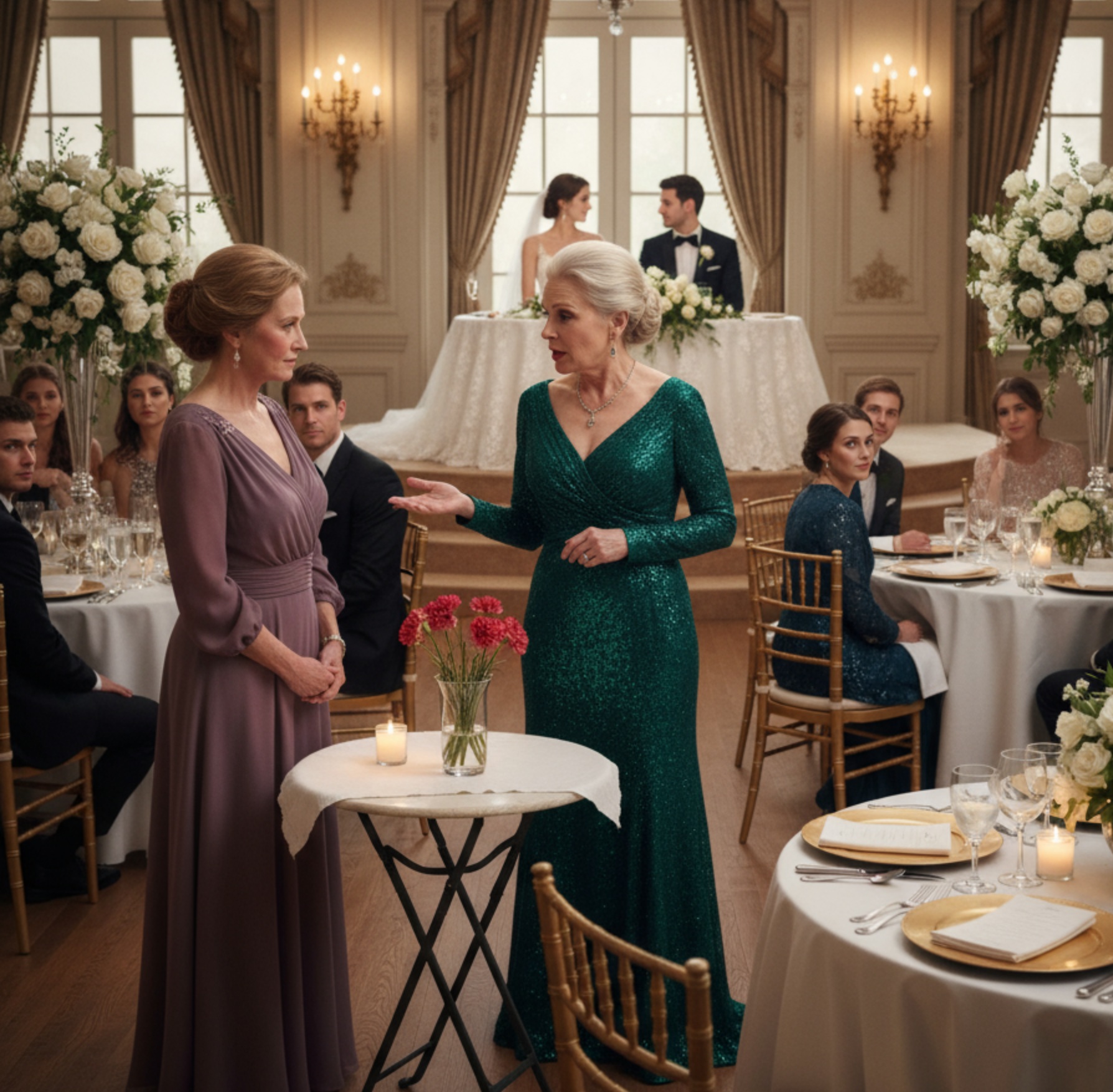 Terwijl de gasten naar hun tafels werden geleid, zorgde mevrouw Margaret Whitfield ervoor dat iedereen zag dat ze mij naar de tafel achterin leidde, een gammel tafeltje net binnen de keukendeur.