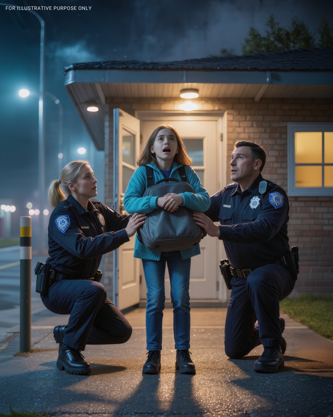 Ze klemde een kleine rugzak vast en legde trillend uit: « Mijn stiefvader en zijn vrienden – ze waren dronken. Ze hebben haar geslagen. Ik heb geprobeerd ze tegen te houden, maar het lukte me niet. Help alstublieft. »