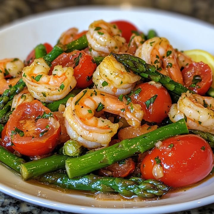Knoflookgarnalen met verse tomaten en groene asperges – Beste recepten