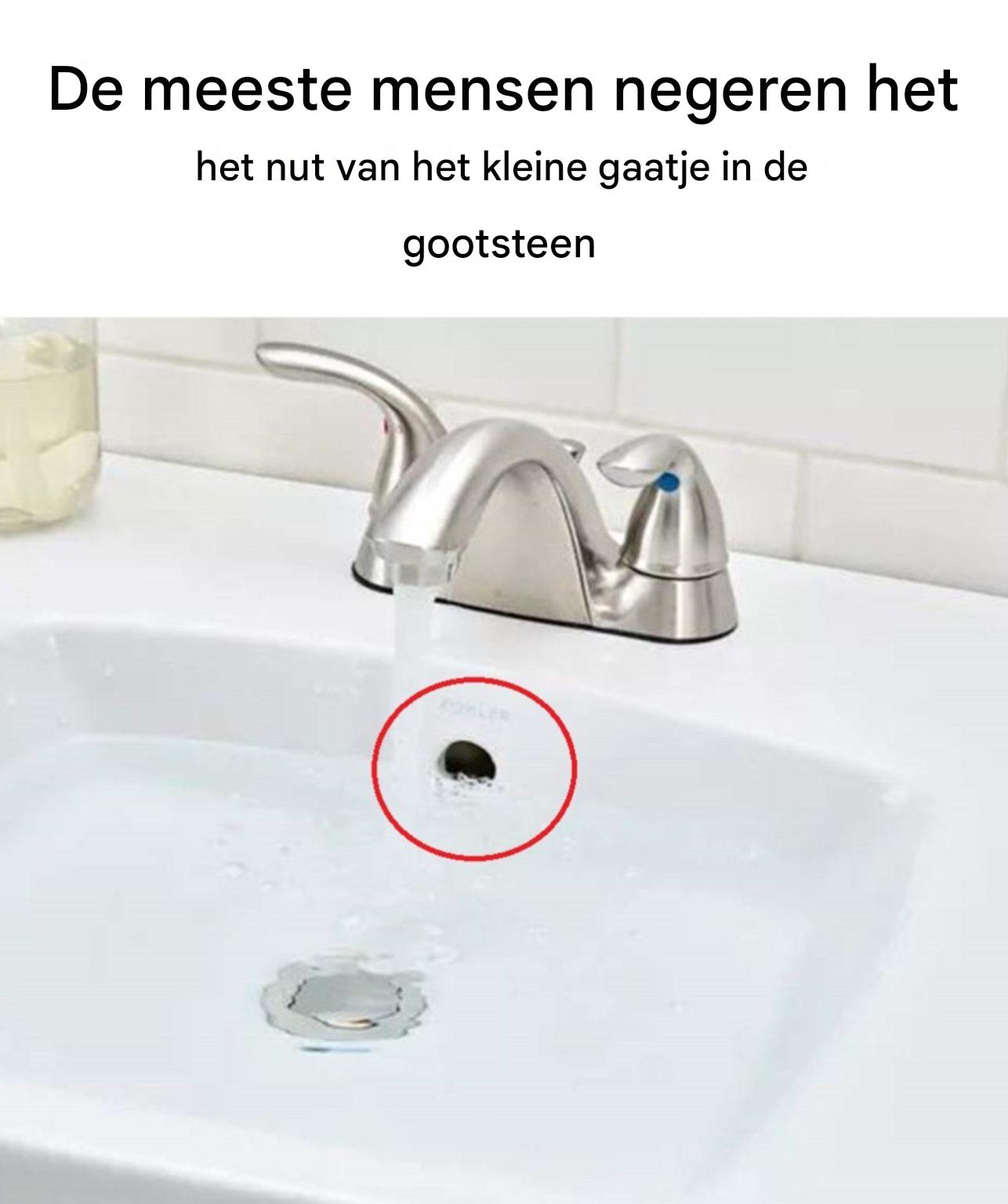 Je hebt het waarschijnlijk al eens opgemerkt, maar er niet echt bij stilgestaan. Je hebt je vast afgevraagd waar dat kleine, onopvallende gaatje recht onder je kraan voor is… of misschien heb je het nog nooit gezien. Maar het dient een veel nuttigere functie dan je misschien denkt.