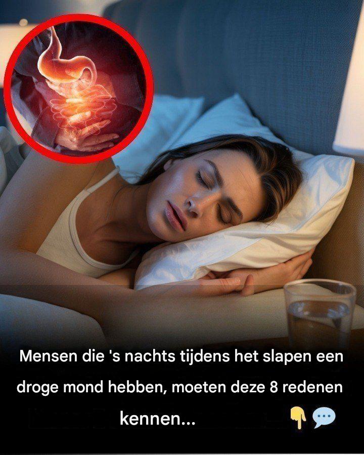 Terwijl u slaapt, blijft uw lichaam voedsel verteren. Hierbij wordt water aan uw lichaam onttrokken, waardoor u een droog gevoel in uw mond krijgt.