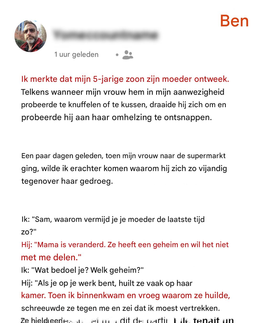 Sams reactie was onverwacht en verontrustend. « Mam is veranderd. Ze heeft een geheim en wil het niet met me delen, » zei hij, zijn kleine gezicht donker van verwarring en pijn.