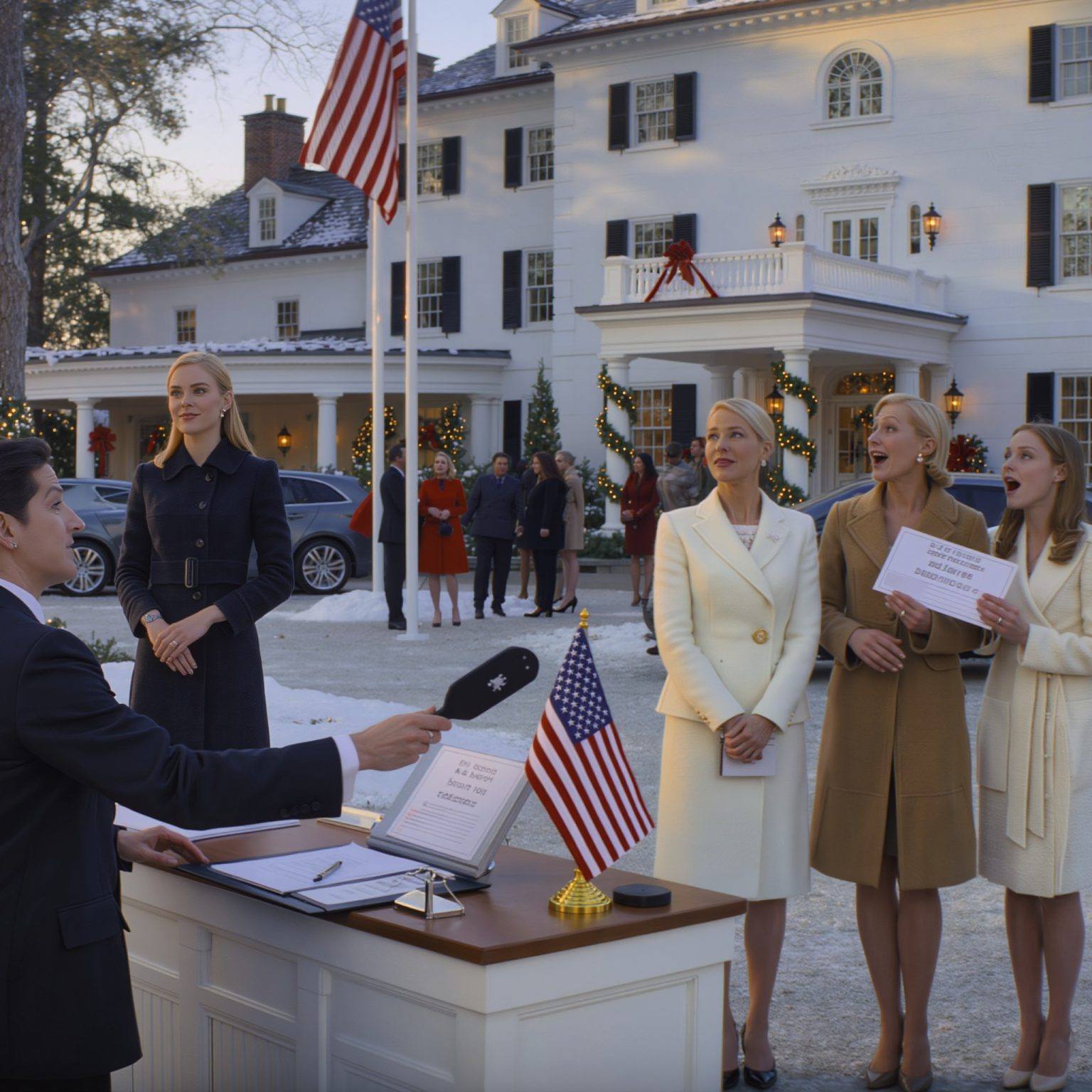 Ik wist meteen dat die lach voor mij bedoeld was toen ik de grindoprit opstapte. Hij was scherp, hoog en doordringend, alsof ze er al sinds zonsopgang op geoefend hadden. Mijn nicht Marissa gaf haar zus een duwtje en fluisterde hard genoeg zodat de helft van de menigte het kon horen: “Nou, kijk eens aan! Ik wist niet dat mensen dankzij veilingen van salaris naar salaris konden leven.”
