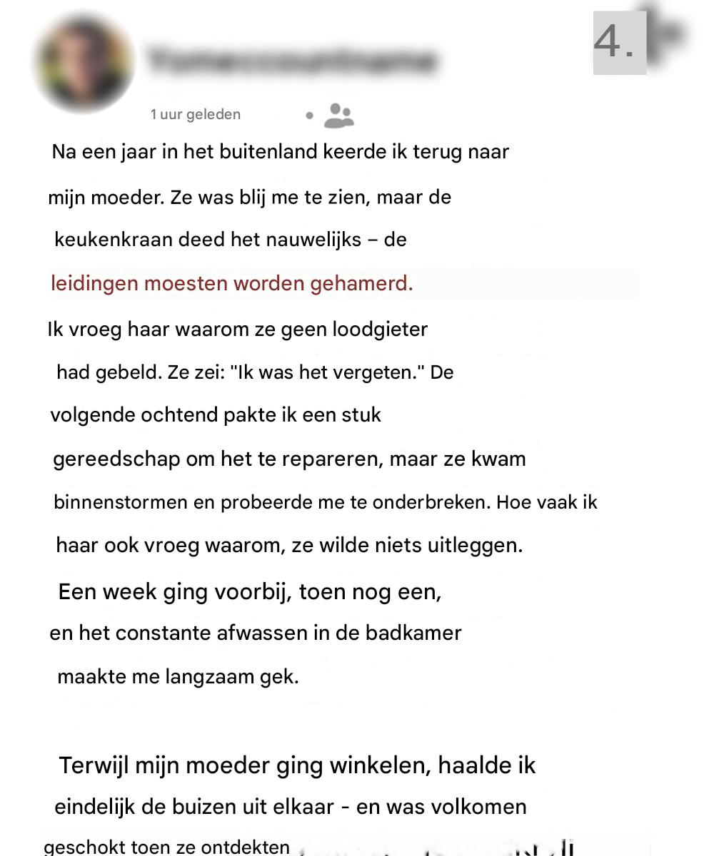 « Mam, je maakt me bang, » zei ik op een ochtend bij de koffie tegen haar. « Wat is er gebeurd terwijl ik weg was? »