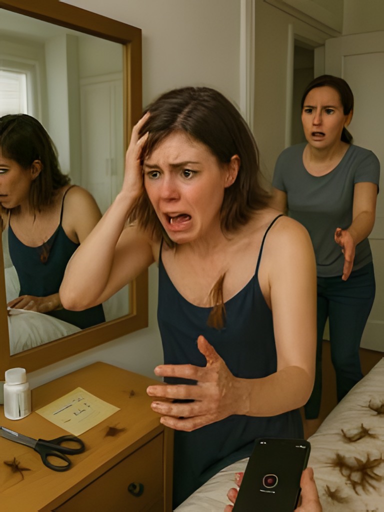 Ik werd wakker met een scherpe, onbekende geur – metaalachtig, bitter – en een verontrustend gevoel in mijn nek dat mijn maag deed omdraaien. De spiegel bevestigde mijn gruwelen. Mijn haar – ooit lang, kastanjebruin en zorgvuldig verzorgd – was ruw geknipt in warrige krullen. Even dacht ik dat ik beroofd was in mijn eigen bed.
