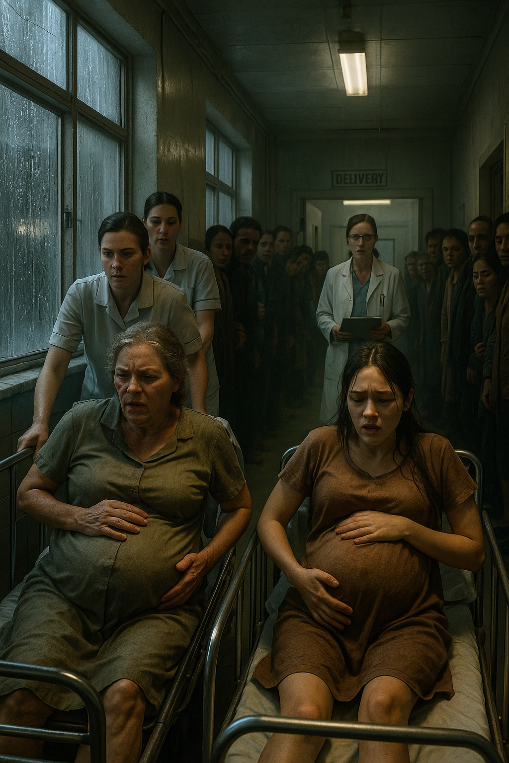 In het ziekenhuis haastte het personeel zich om twee verloskamers klaar te maken. Maar even later brak er chaos uit in de gangen.