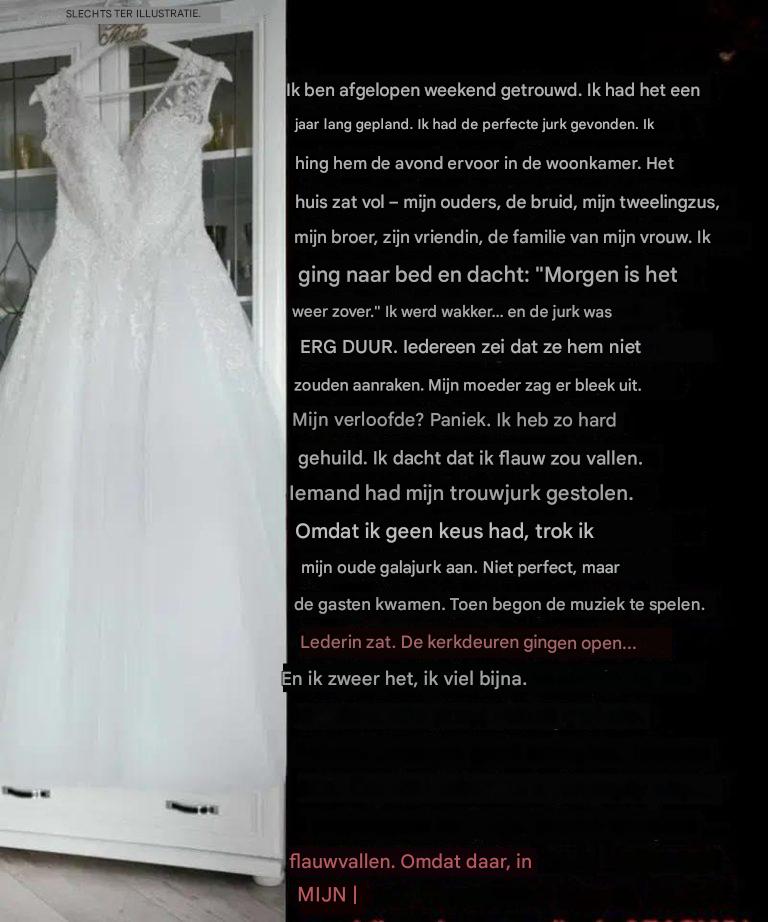 Maar die avond leek ze me te steunen. Ze hielp me zelfs om mijn jurk voorzichtig in de woonkamer op te hangen.