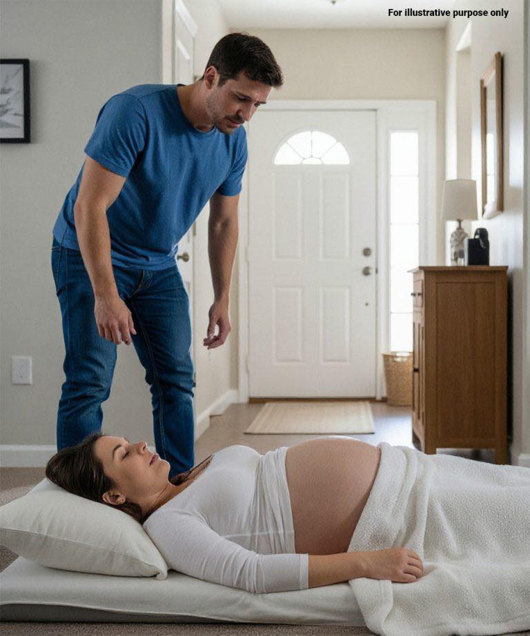 Toen ik de woonkamer binnenkwam, verstijfde de aanblik. Mijn dochter Emily – zeven maanden zwanger, uitgeput en zichtbaar onwel – lag opgerold op een luchtbed, pal op de parketvloer. Haar armen waren beschermend om haar buik geslagen, alsof ze zichzelf en haar ongeboren kind tegen de kou wilde beschermen.