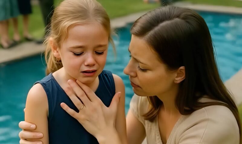 Ze antwoordde met tranen in haar ogen: « Tante Susan heeft me verboden te zwemmen. Iedereen mag wel, maar ik niet. »