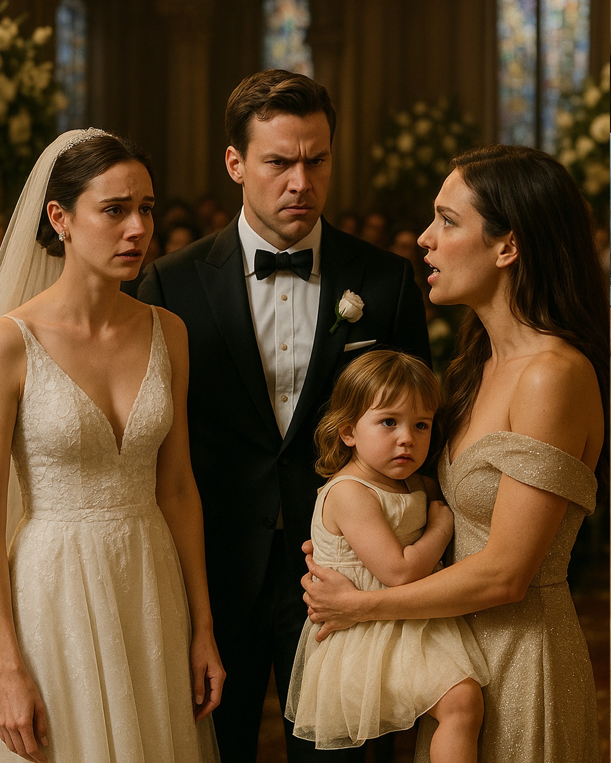 Een vrouw, gekleed in het wit hoewel ze niet was uitgenodigd, stapte de kerk binnen. In haar armen droeg ze een klein meisje, niet ouder dan drie jaar.