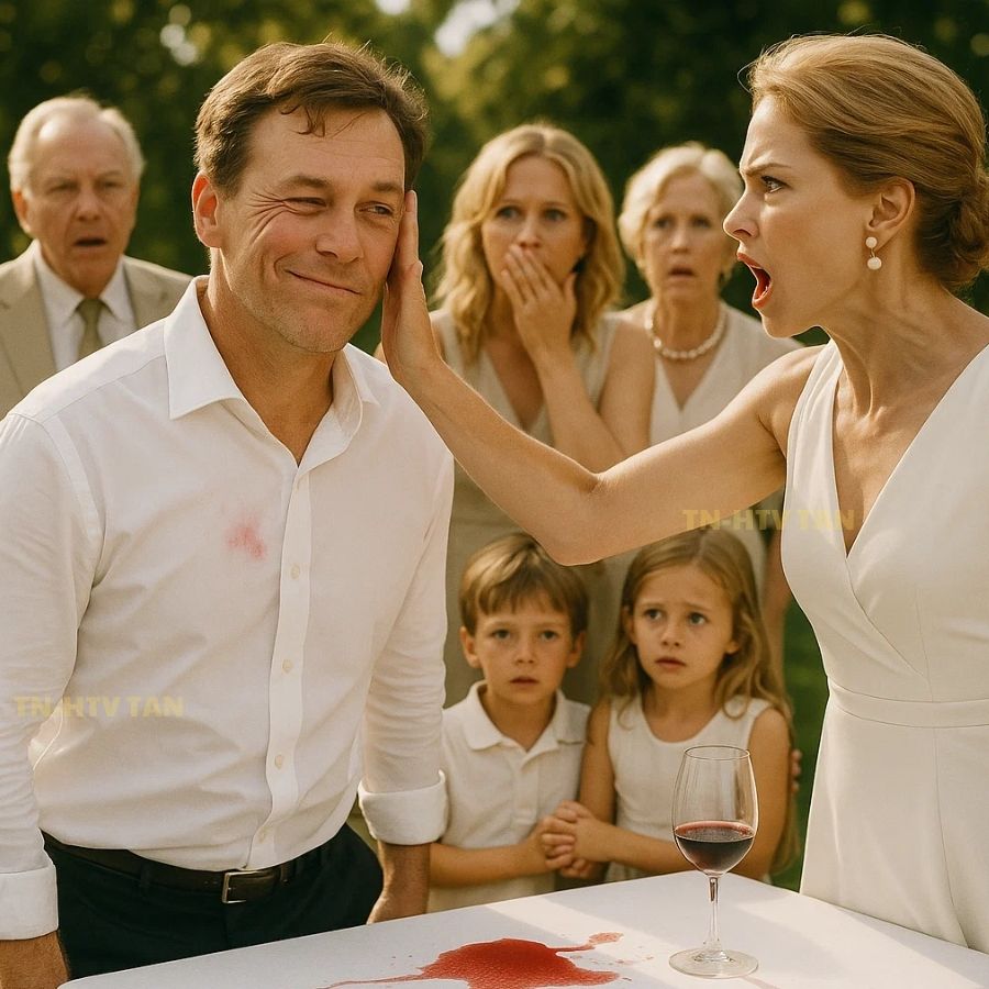 Je bent gewoon een bloedzuiger. » Iedereen verstijfde. Evelyns ogen werden groot, maar ze zei niets. Ik zei kalm: « Clarissa, misschien niet hier. » Voordat ik mijn zin kon afmaken, stapte ze naar voren en sloeg me. Het geluid echode over de patio. Mijn kinderen hapten naar adem. Eli greep Ava’s hand vast. Ik draaide me langzaam om naar haar, mijn wang prikte.