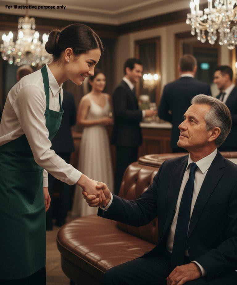 Het ongemak behoeft geen vertaling. Ondertussen liep Julia, tussen de dienbladen en lege glazen door, behendig door de kamer en ontweek ze gesprekken die niet bij haar hoorden. Ze was 24 jaar oud, met een alerte blik en een uitdrukking die probeerde neutraal te blijven, hoewel haar gedachten zelden stil waren. Ze droeg het personeelsuniform: een wit overhemd, een zwart vest en een netjes gestreken schort.