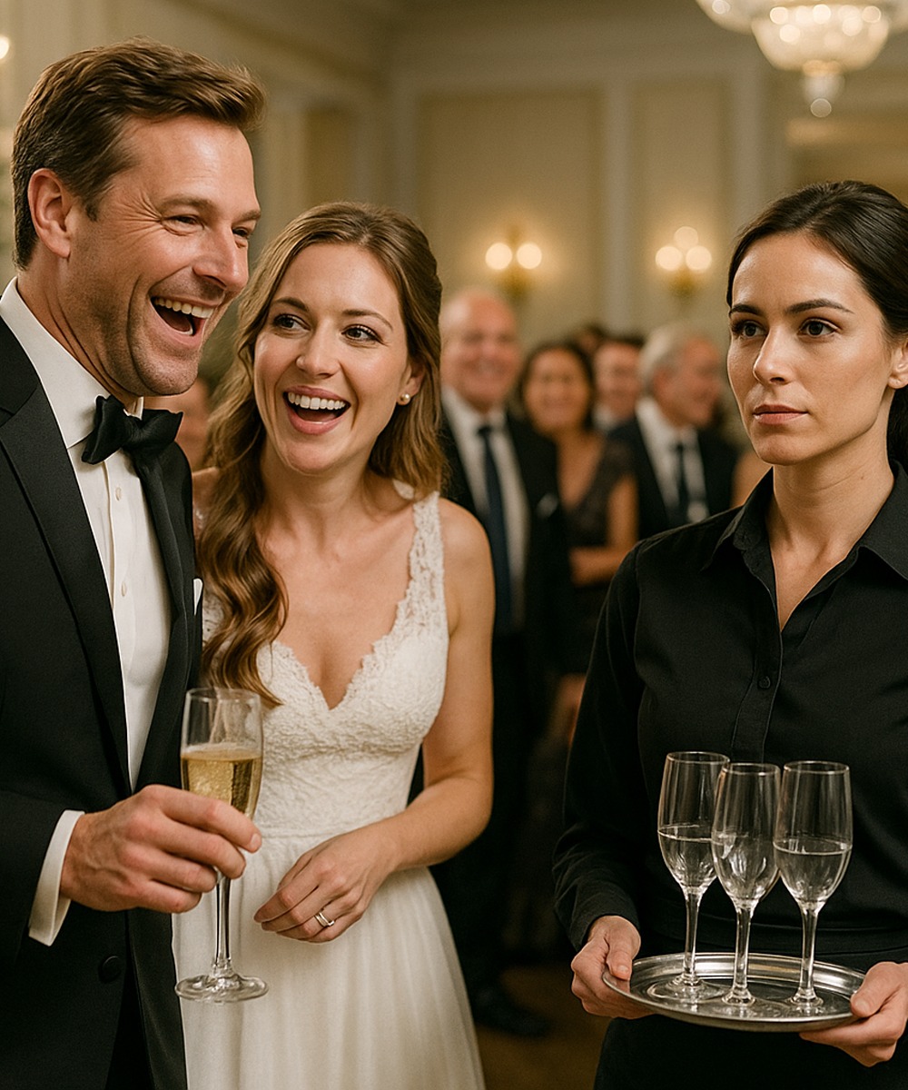 Op mijn hertrouwfeest heb ik hartelijk gelachen toen ik mijn ex-vrouw als serveerster zag werken – maar een half uur later liet haar ware identiteit de hele zaal in stilte achter