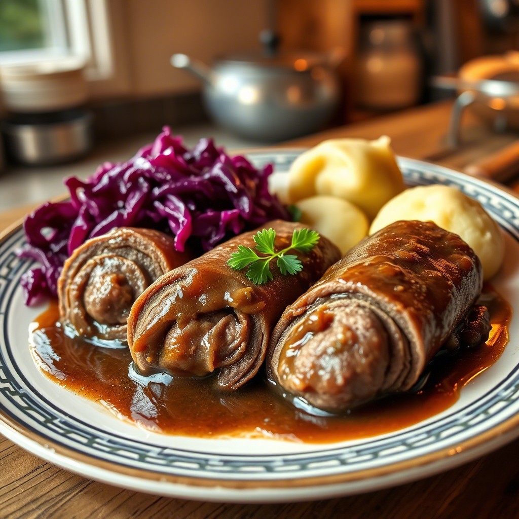 Dit klinkt als een heerlijk en traditioneel recept voor huisgemaakte runderrollades! Hier is een korte samenvatting: