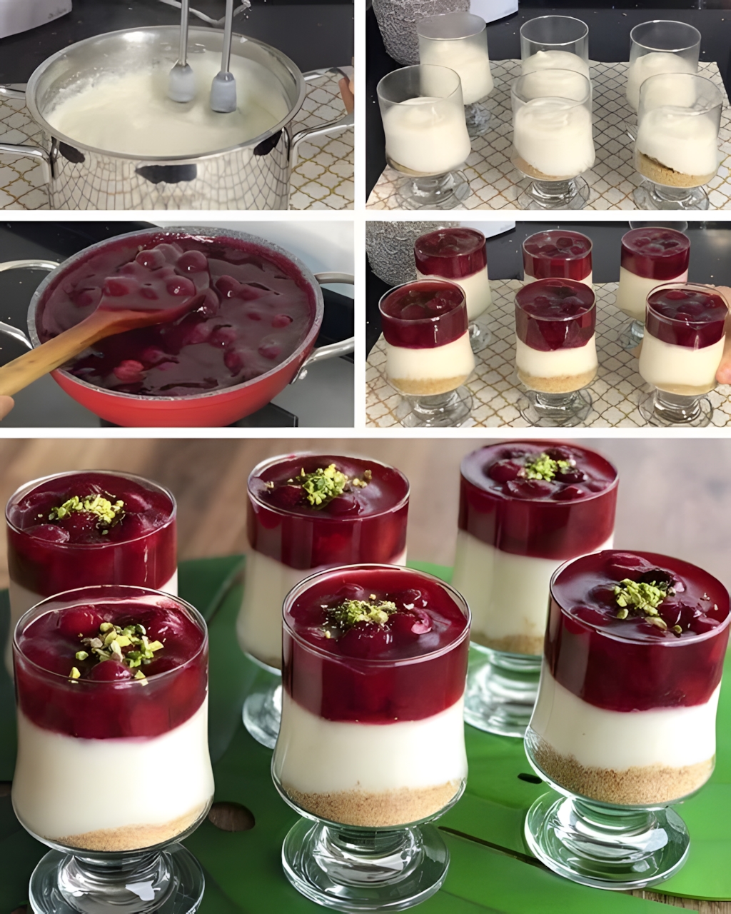 🍒✨ Dit prachtige kersendessert in een glas is een luchtige, romige traktatie met een krokante bodem en een frisse kersentopping. Perfect voor feestjes, een chique diner of een zoete traktatie zonder oven! 😍