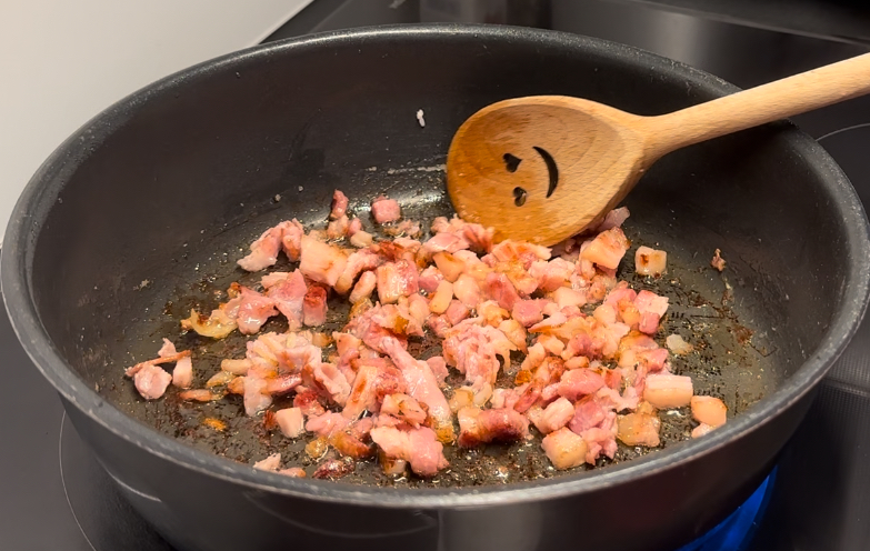 *** Boczek kroimy w kostkę i podsmażamy na patelni ***