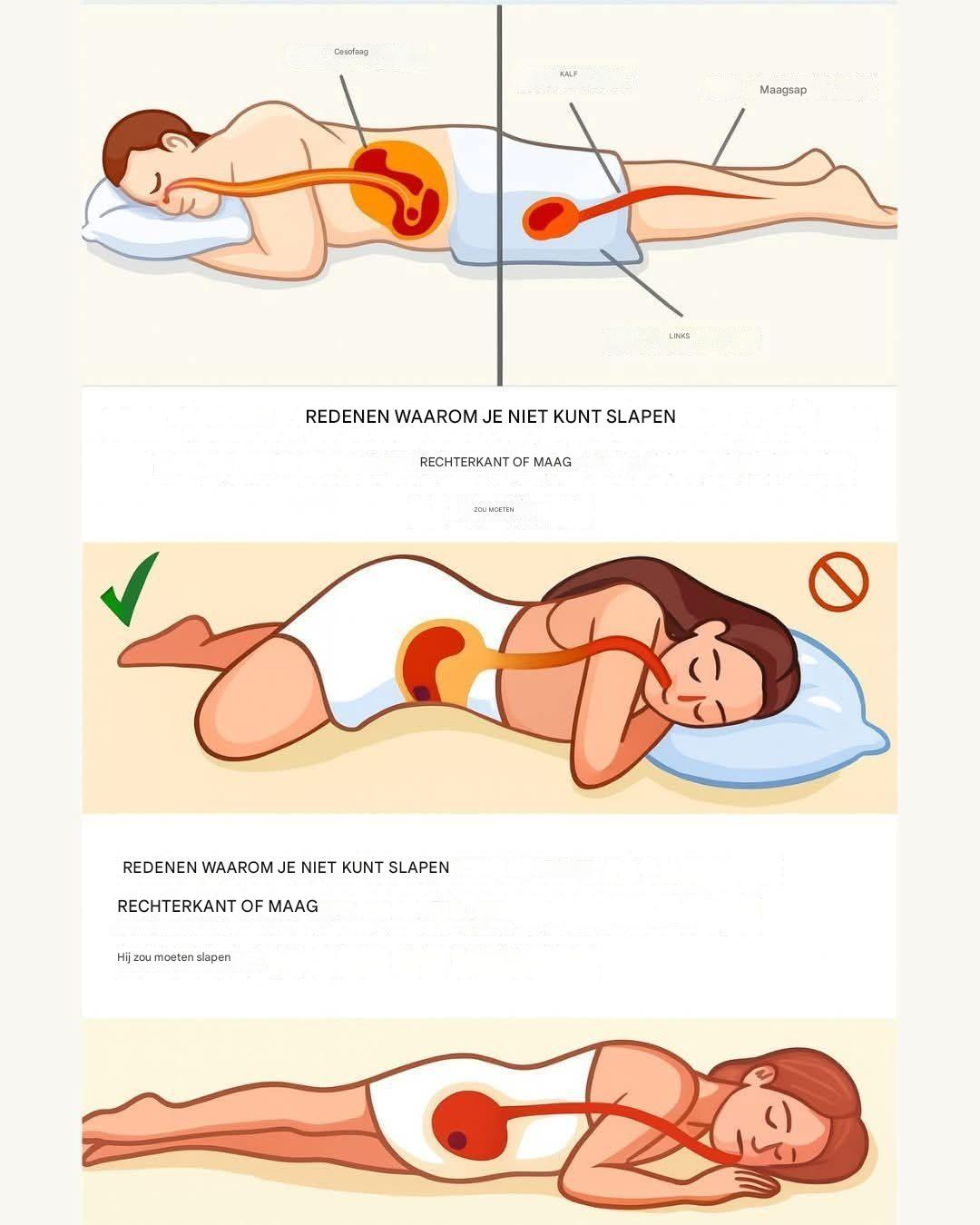 🌀Slapen op uw rug of rechterzij kan daarentegen brandend maagzuur verergeren, omdat de maag in deze positie hoger ligt dan de slokdarm.