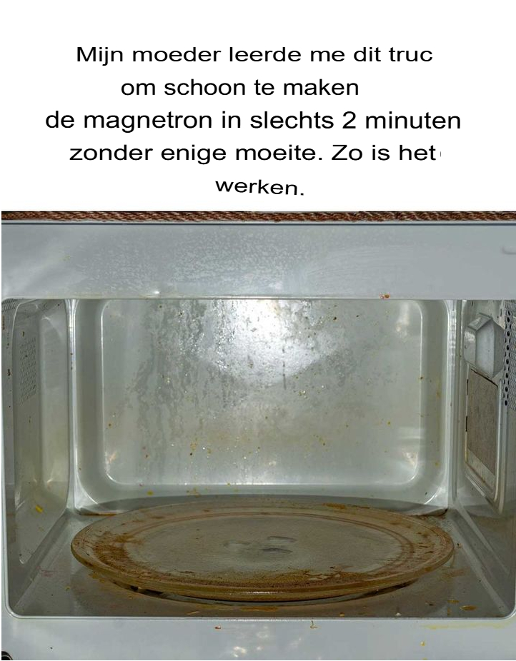 Benieuwd hoe u in slechts 2 minuten een vlekkeloze magnetron krijgt? Dit klinkt misschien te mooi om waar te zijn, maar het is absoluut mogelijk! Mijn moeder leerde mij een simpele maar zeer effectieve truc die vrijwel geen moeite kost. Zodra u deze methode onder de knie hebt, zult u zich afvragen waarom u ooit tijd hebt verspild aan het wegschrobben van hardnekkige vlekken. Wilt u tijd besparen en ervoor zorgen dat uw magnetron hygiënisch is? Lees dan verder voor deze baanbrekende tip.