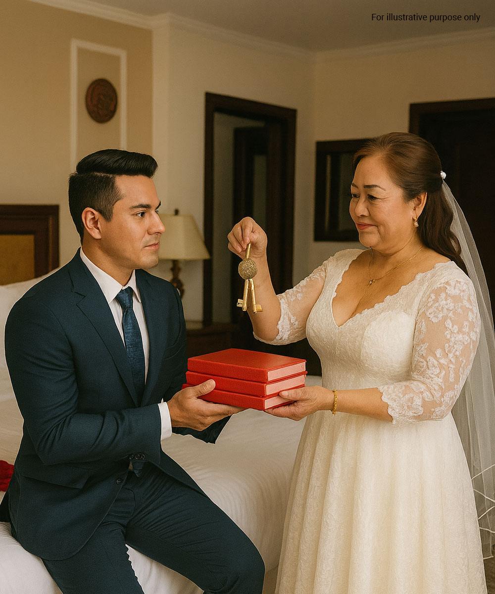 Onze bruiloft was intiem, met slechts een paar van haar vrienden aanwezig. Ze gaf me de sleutels van een gloednieuwe luxe auto en overhandigde me de akte in een trouwenvelop.