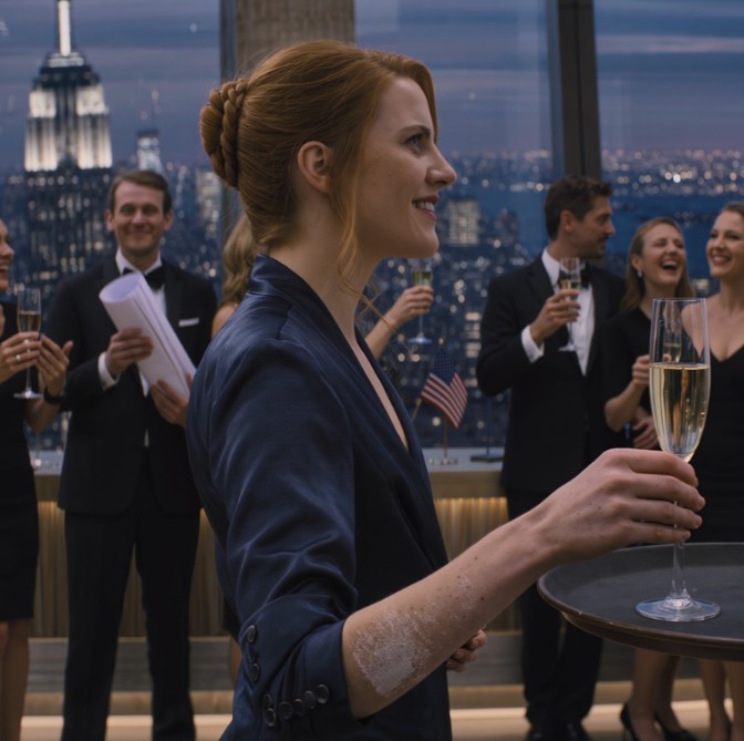 Ik zet de champagneflûte op het dienblad van een voorbijlopende ober en klik er zachtjes en weloverwogen op.