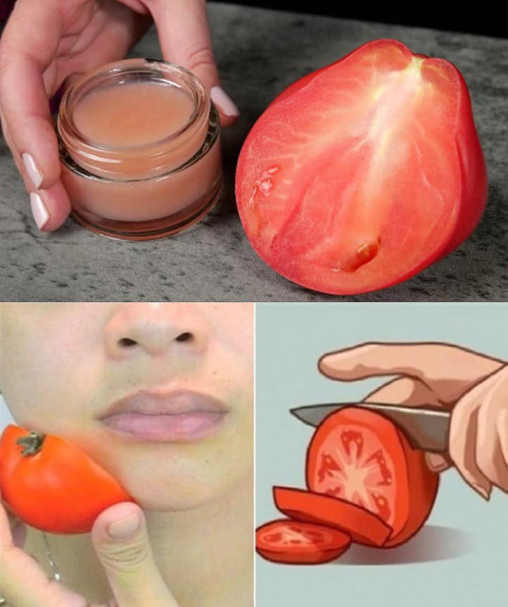 ✔½ rijpe tomaat 🍅– Rijk aan lycopeen, verheldert de huid en vermindert rimpels