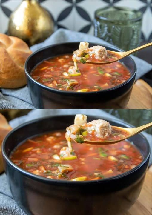 🍅 Tomaten-Groentesoep met Gehaktballetjes – Een Voedzame Maaltijdsoep