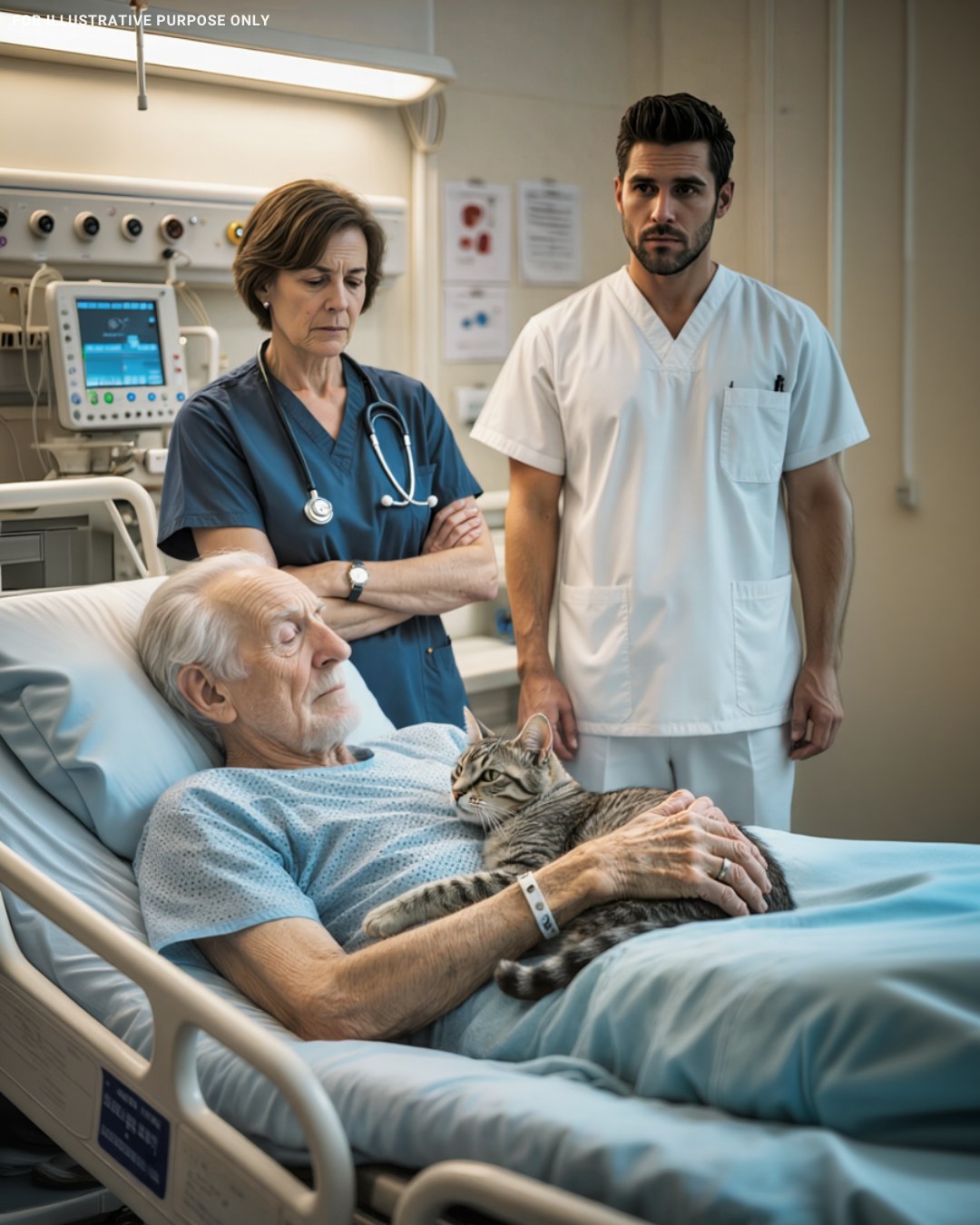 Op de intensive care lag een oudere man in het ziekenhuis. Hij had al een maand op zijn kamer doorgebracht en gedurende al die tijd was er geen enkel familielid op bezoek gekomen. Zijn enige vriend en troostbron was zijn kat.