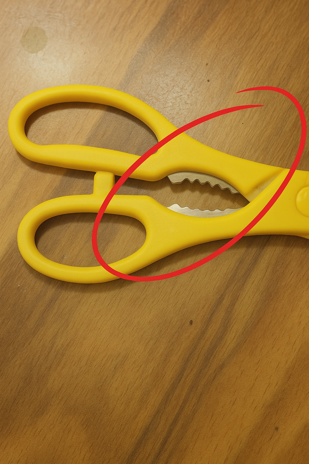 Maar in werkelijkheid is dat gekartelde onderdeel een verrassend praktisch ingebouwd hulpmiddel. Het is geen fout of gimmick – het is een slim ontwerpelement dat het leven in de keuken een stuk makkelijker kan maken. Laten we eens kijken wat het doet, hoe je het gebruikt en waarom je er de volgende keer dat je je schaar pakt, beter op moet letten.