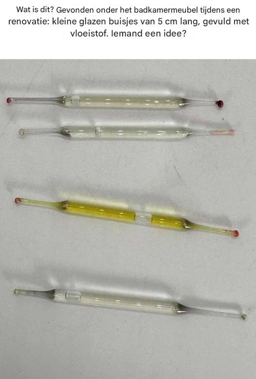 Tijdens een routinematige badkamerrenovatie is het niet ongebruikelijk om in de hoeken en gaten van een huis relikwieën uit het verleden te ontdekken. Een van die ontdekkingen kan bestaan uit kleine glazen buisjes van ongeveer 5 cm lang, gevuld met vloeistof. Deze intrigerende vondsten kunnen nieuwsgierigheid wekken en vragen oproepen over hun oorsprong en doel. Zouden het relikwieën uit een vervlogen tijdperk kunnen zijn, vergeten en vergeten? Dit artikel duikt in het mysterie van deze glazen buisjes en onderzoekt hun mogelijke betekenis en historische context.