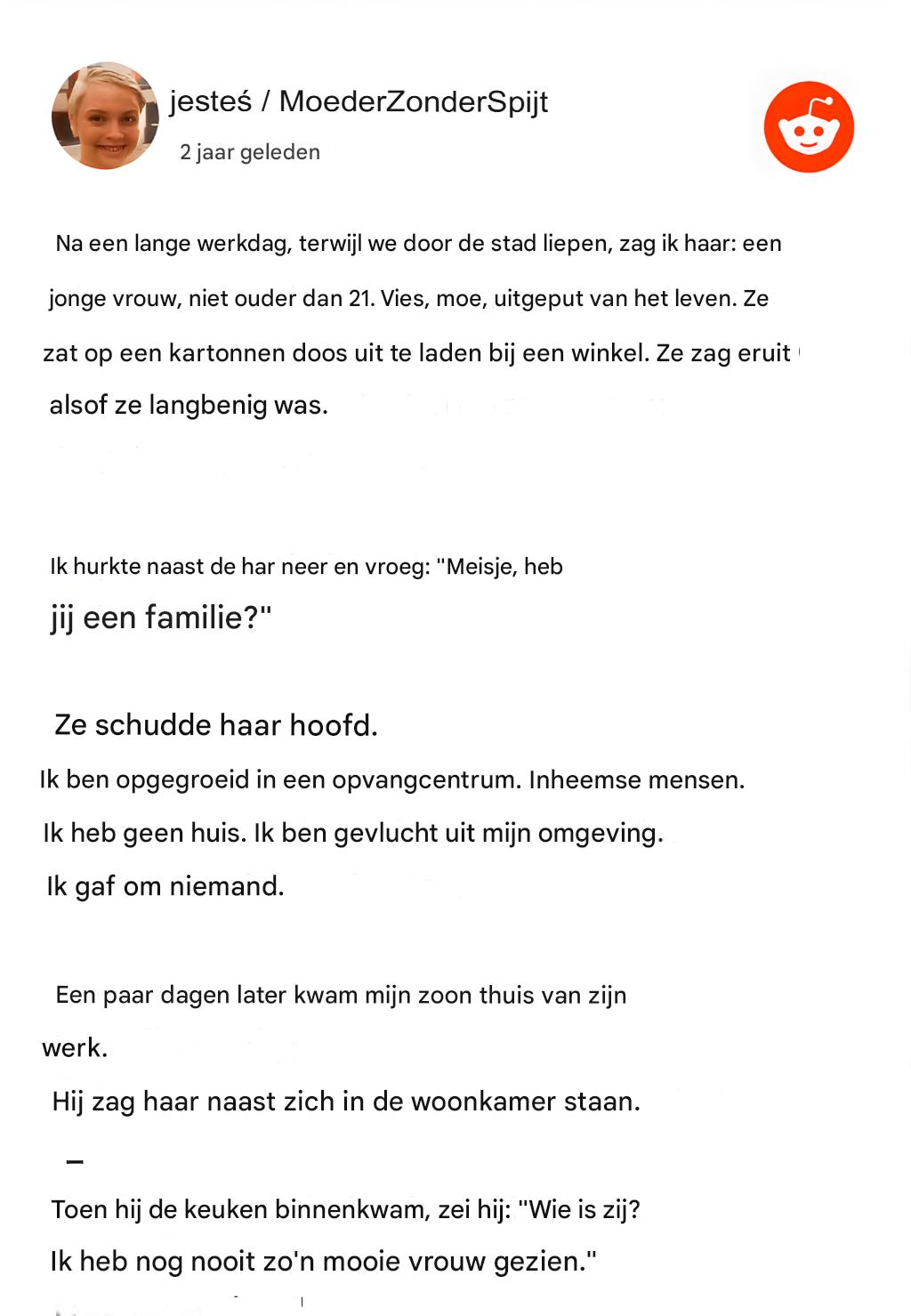 Na een lange werkdag liep ik door de stad toen ik haar zag: een jonge vrouw, niet ouder dan 21, vies, moe, uitgeput van het leven. Ze zat op een kartonnen doos voor een gesloten winkel. Haar blik was leeg.