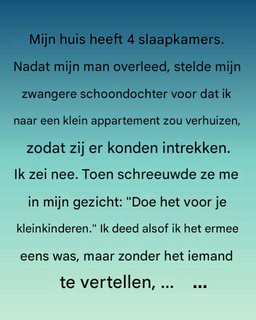 Ik glimlachte en zei: « Je hebt gelijk. Ik ga verhuizen. »