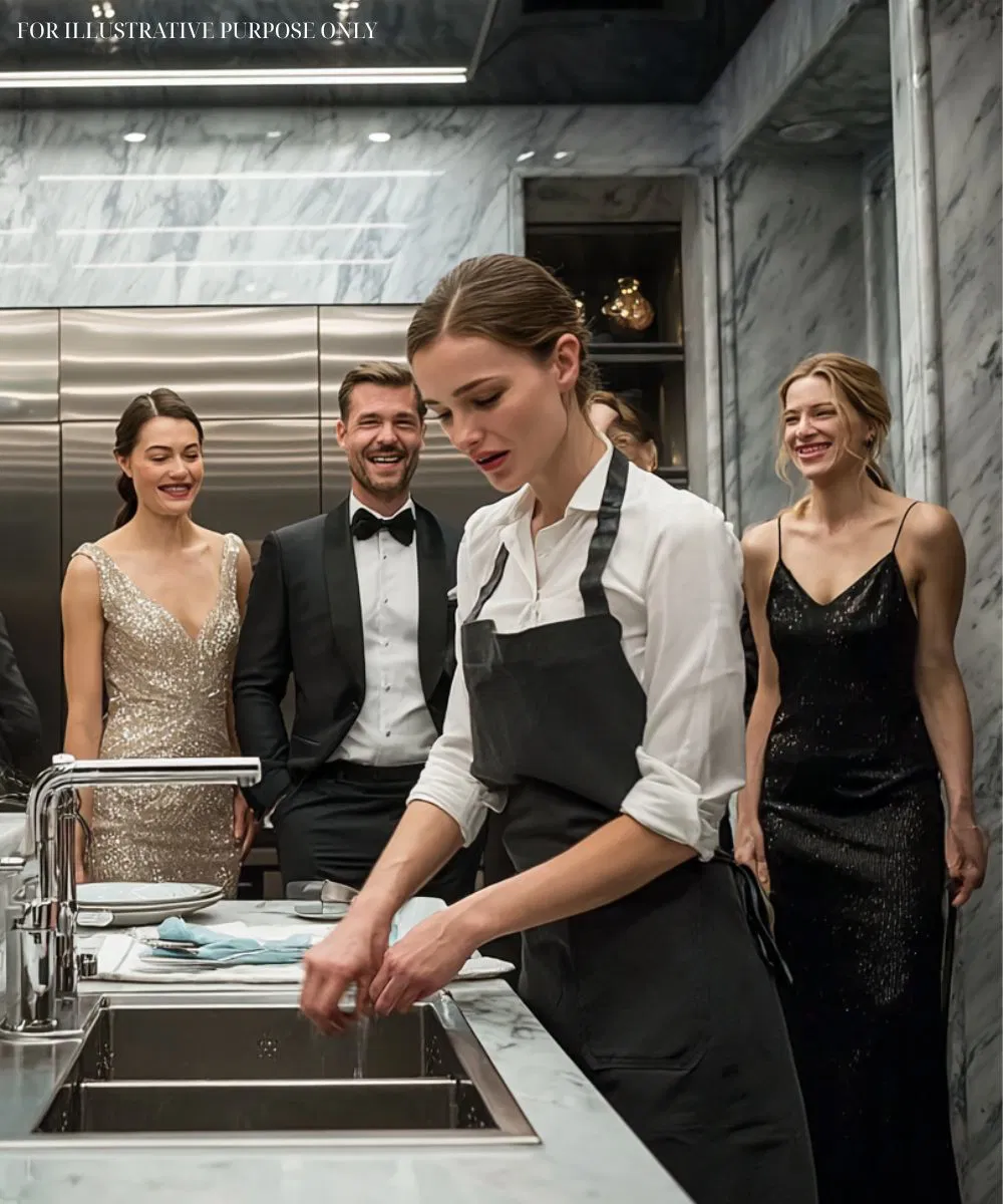 Ik stond bij de industriële spoelbak, mijn handen bedekt met schuim, terwijl er gelach uit de kamer boven klonk. Voor iedereen die aanwezig was, was ik gewoon een anonieme medewerker.