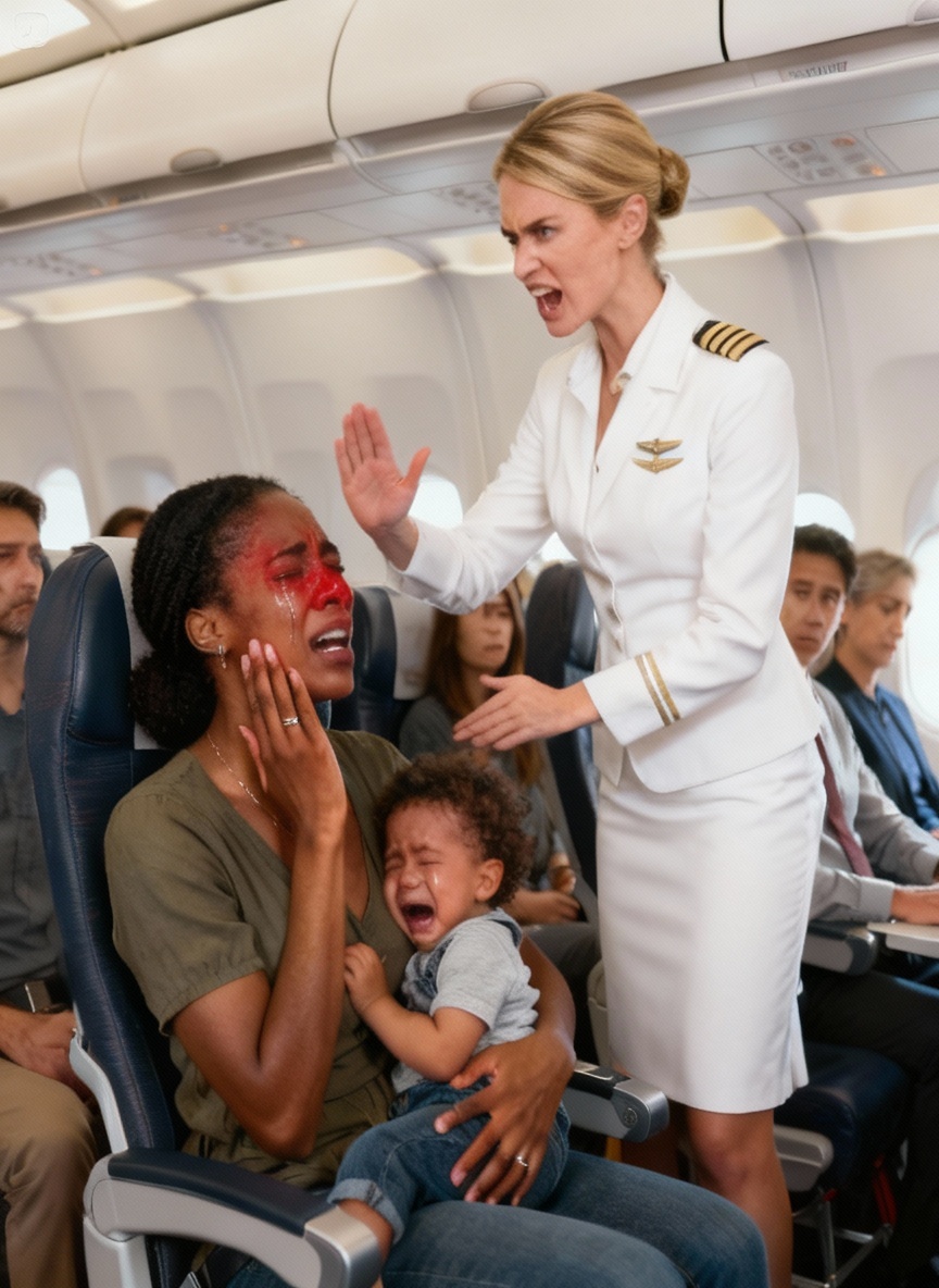 De naam van de vrouw was Angela Carter, een 28-jarige alleenstaande moeder uit Atlanta, die met haar zes maanden oude zoontje Mason naar Chicago reisde. Ze had moeite om hem rustig te houden sinds ze aan boord was gegaan. Mason kreeg tandjes, was rusteloos en voelde zich ongemakkelijk in de krappe stoel. Angela, beschaamd maar haar best doend, had beleefd gevraagd of ze heen en weer door het gangpad mocht lopen om hem te kalmeren. De stewardess, een lange vrouw van in de vijftig genaamd Barbara Miller, had al tekenen van irritatie vertoond. Haar stem was scherp, haar ogen koud. Toen Angela opnieuw om wat heet water vroeg om Masons flesvoeding te bereiden, grijnsde Barbara en snauwde: « Misschien moeten jullie leren hoe jullie je kinderen onder controle te houden voordat jullie in het vliegtuig stappen.
